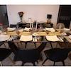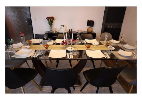 - moderner, großer Glastisch mit Stühlen
