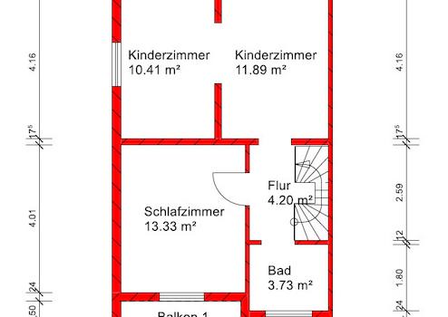 Das Haus bietet mit seinen drei Etagen und einer Wohnfläche von ca. 96 m² ausreichend Platz für eine kleine Familie. Die vier hellen Zimmer, darunter drei Schlafzimmer, schaffen eine einladende Atmosphäre. Im Erdgeschoss steht Ihren Gästen ein WC zu Verfügung. Im Obergeschoss befindet sich ein helles Badezimmer mit Dusche, WC und Waschbecken. Den Speicher erreichen Sie über eine Zugtreppe. Es besteht die Möglichkeit diesen Raum zusätzlich zu Wohnzwecken auszubauen.
