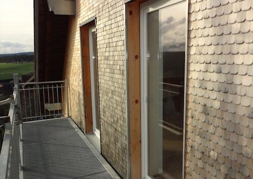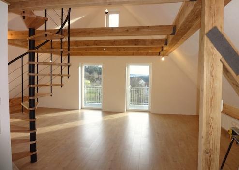 Wohnung in einem Bauernhausensemble. Großer Balkon mit Fernsicht über die Dächer von Wittendorf hinweg.