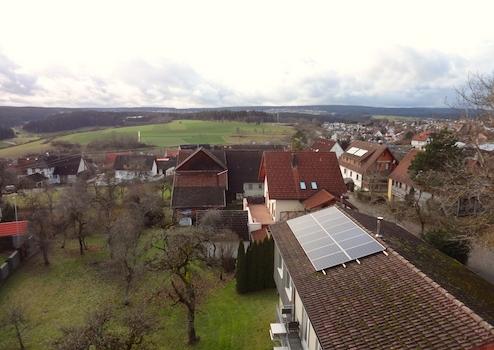 Oben am Hang gelegen, freie Fernsicht über die Dächer von Wittendorf hinweg.
