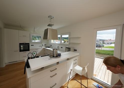 Innen ist das Haus schon fertiggestellt und beziebar mit 2 eingebauten modernen hochwertigen Einbauküchen und modernen Bädern.