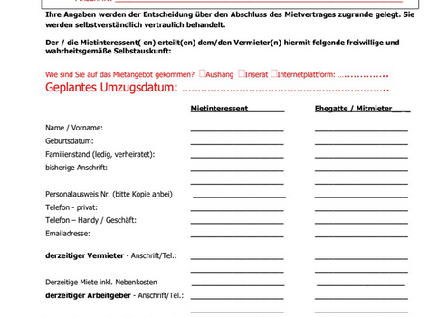 Interessentenhinweis: Bei Interesse senden Sie uns bitte die ausgefüllte Selbstauskunft aus dem Anhang mit Ihrer Anfrage zu.