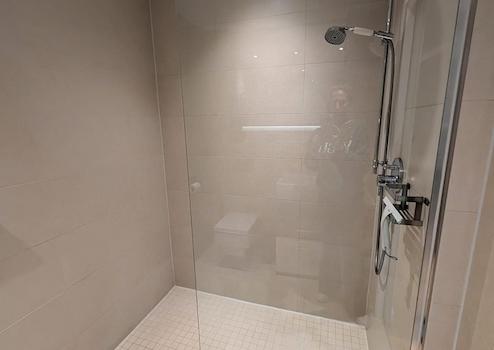 • Spacious bathroom with floor-level shower and Italian fine stoneware tiles