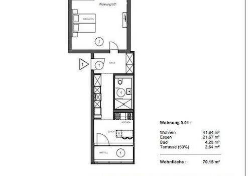 Das offene Raumkonzept sorgt für ein weitläufiges, lichtdurchflutetes Wohngefühl. Edles Parkett und eine energieeffiziente Fußbodenheizung verleihen dem Apartment eine behagliche Atmosphäre. Das stilvoll gestaltete Bad mit italienischen Feinsteinzeug Fliesen überzeugt mit bodentiefer Dusche, ausgesuchten Materialien und eleganter Gestaltung.