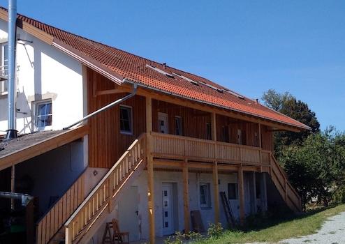Der Dreiseithof befindet sind in absolut ruhiger Weilerlage im wunderschönen Hügelland umgeben von Wiesen und Wäldern. Die nächstgelegene Kleinstadt Markt Tann ist 5 km entfernt und auch mit dem Fahrrad zu erreichen. Dort befinden sich neben Lebensmittelgeschäften auch eine Apotheke, Allgemeinarzt, Zahnarzt und Tierarzt, sowie eine Hauptschule. Die Grundschule, sowie der Kindergarten befinden sich in Reut (2 km) und Taubenbach (5 km). Ein Gemeindebus hält direkt vor dem Anwesen, um die Kinder zu transportieren.