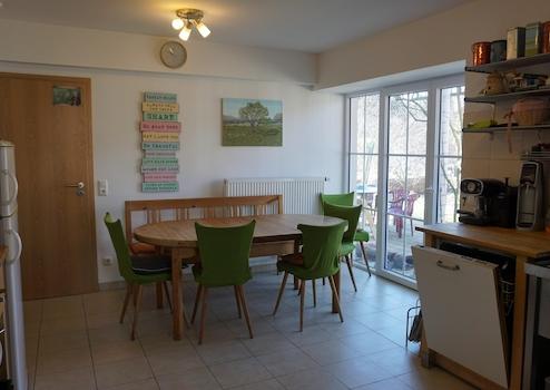 Balkon, Terrasse, Garten, Duschbad, Einbauküche, Parkett, Fliesen