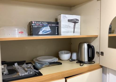 - Fön, Staubsauger, Computerschreibtisch, Bügelbrett, Bügeleisen