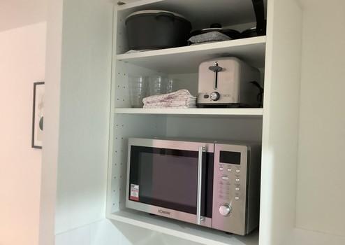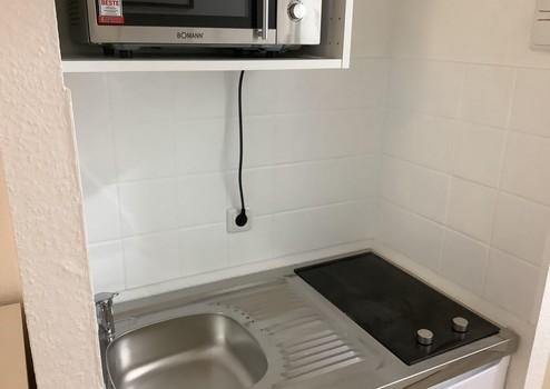 - Miniküche inkl. Kühlschrank, Mikrowelle, Kaffeemaschine, Toaster und Ceranfeld