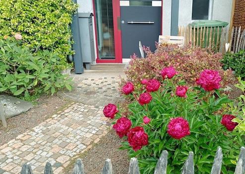 1 Wohn-/Schlafzimmer Laminat, Etagen- + Fußbodenheizung, 2 Fenster + Ein-/Ausgangstür in den Garten