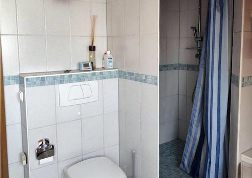 1 Bad/WC gefliest, mit geräumiger Dusche, Aufsatzwaschbecken, WC und Fenster