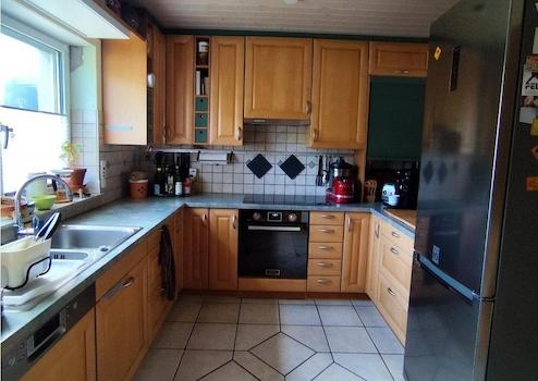 1 Küche gefliest mit Einbauküche (Birkenfurnier)