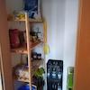 Ein Abstellkammer mit Steckdosen,Licht,Türe,gefliest.