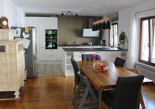 Terrasse, Garten, Keller, Einbauküche, Gäste-WC, Parkett, Laminat, Fliesen