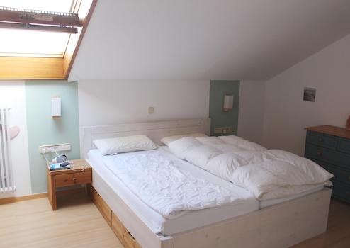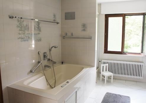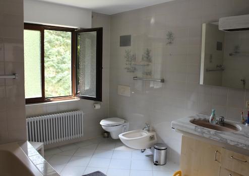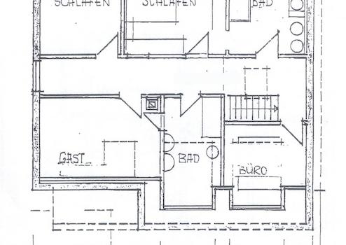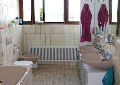 Im Obergeschoss befinden sich 4 Zimmer (seither als Schlafzimmer und Büro genutzt) und 2 Badezimmer, die jeweils mit Dusche, Badewanne, WC, Bidet und Doppelhandwaschbecken ausgestattet sind.