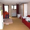 Im Erdgeschoss befindet sich ein großes einladendes Entrée mit Gäste-WC, Garderobe, Speisekammer sowie ein weitläufiges Wohnzimmer mit offener Küche und der Zugang zur überdachten Terrasse mit Garten in Südausrichtung.