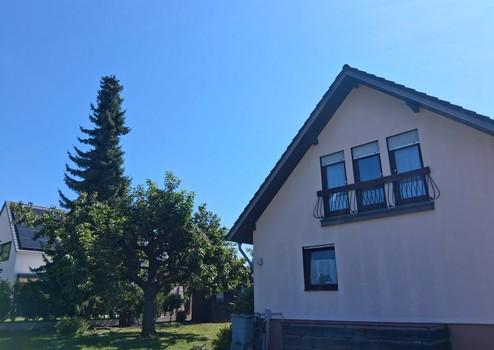 Weber Fertighaus aus dem Jahr 1979 mit Renovierungsbedarf. Das Haus steht auf einem 724m2 großen Grundstück mit altem Baumbestand und Gartenteich . Handwerker die sich hier verwirklichen wollen können sich hier ihr Traumhäuschen gestalten. Die Lage ist sehr ruhig und gemütlich, unweit der B3 . Nach Bad Krozingen sind es 5min , nach Freiburg 10 min mit dem Auto. Das Haus verfügt über eine Ölheizung und einen Kaminofen , die Heizung müßte ersetzt werden . Das Dachgeschoss ist nicht ausgebaut. Die Einliegerwohnung bietet zusätzlichen Wohnraum.