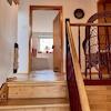 Im Obergeschoss erwartet Sie ein weitläufiger Wohn- und Essbereich, ideal für gesellige Abende und entspannte Stunden. Eine separate Küche mit Essplatz, ein Gäste-WC, ein charmantes Lesezimmer oder Kinderzimmer sowie ein Balkon mit Blick ins Freie runden diese Ebene ab.