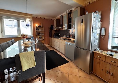 Früheres Ladenlokal, heute moderner Wohnraum mit offener Küche inkl. Essplatz, Gäste-WC, Schlafzimmer, Kinderzimmer, Bad mit Dusche und Badewanne.