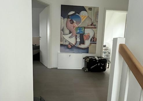 Im oberen Geschoss liegen drei Schlafzimmer sowie ein großes Bad mit Dusche und Badewanne. Das Bad ist komplett eingerichtet, inklusive Handtücher und Haartrockner. Hier lässt es sich gut einziehen und wohlfühlen.