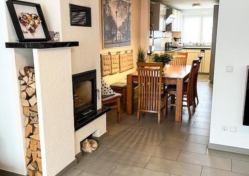 Besonders hervorzuheben ist der gemauerte Kamin, der Ende 2025 modernisiert wurde und nicht nur Gemütlichkeit bietet, sondern auch als zusätzliche, effiziente Heizquelle dienen kann. Die hochgelegene, nicht einsehbare Terrasse schafft einen privaten Ort zum Entspannen und Genießen.