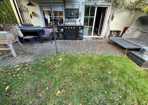 Im Erdgeschoss erwartet Sie ein großzügiger, offener Wohn- und Essbereich mit integrierter Einbauküche sowie praktischer Speisekammer. Von hier aus genießen Sie den direkten Zugang zum Garten, der durch eine blickdichte Hecke rundum geschützt ist und somit ein hohes Maß an Privatsphäre bietet. Der Eingang ist zudem komfortabel über nur eine Stufe erreichbar.