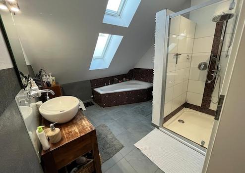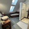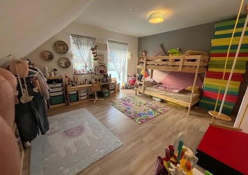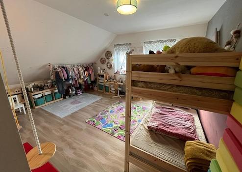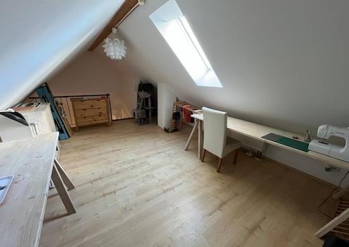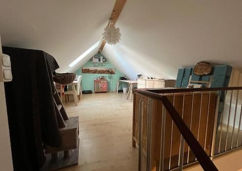 Über eine vollwertige Holz-/Stahltreppe erreichen Sie den ausgebauten Spitzboden, der zusätzlichen Platz für Gäste, Arbeiten oder Hobbys schafft. Mehrere Dachfenster, teilweise elektrisch, sorgen hier für viel Licht und eine freundliche Atmosphäre.