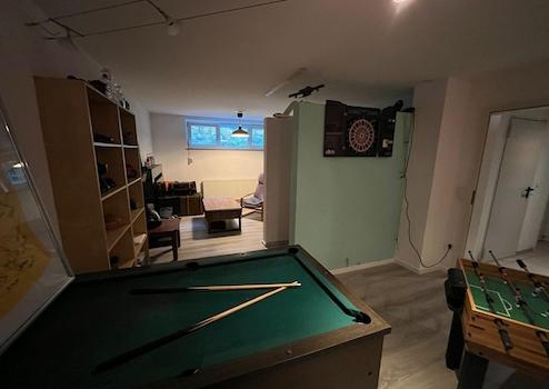 Ein weiteres Highlight ist das ca. 29 m² große Kellerzimmer, das durch ein 3-fach verglastes Fenster mit Natur-Lichtschacht hell und wohnlich wirkt und mit einer eigenen Dusche überzeugt. Auch ein Hauswirtschaftsraum sowie ein weiter großzügiger Kellerraum runden den Keller ab.