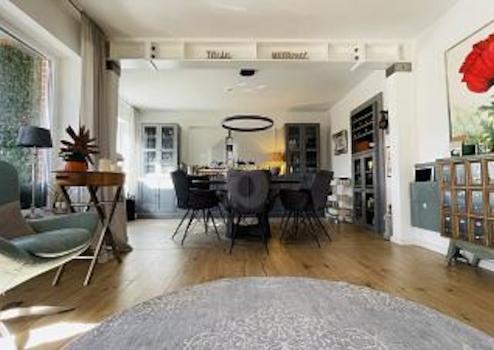 Ideal für alle die, die großzügige Räume schätzen und gerne Zeit mit Freunden auf einer exklusiven Terrasse verbringen möchten. Die hochwertig renovierte und sanierte Wohnung bietet mit ihren 5 Zimmern, einer mit modernen Elektrogeräten ausgestatteten offenen Küche und 80qm grossem Terrassendeck viel Raum zum Entfalten und Genießen. Sämtliche Räume und beide Bäder sind elegant und exklusiv ausgestattet. Zwei PKW Stellplätze á 15.000 runden das Angebot ab. Genießen Sie ein harmonisches Zusammenleben in einer herzlichen Hausgemeinschaft.