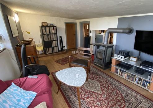 Die 2-Zimmer-Wohnung im zweiten Obergeschoss ist vermietet. Auf dem gleichen Stock liegen noch zwei weitere Räume, einer davon ist ebenfalls vermietet, der andere wird als Lagerraum genutzt. Weitere Flächen befinden sich auf der großen Bühne.