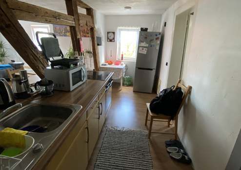 Das Haus hat dem Alter entsprechend im Wohnbereich im 1. OG unterschiedliche Deckenhöhen, teilweise bei ca. 2 Meter. Ebenso müssen Sie mit Böden und mit Wänden rechnen, die nicht im rechten Winkel verlaufen. Weitere Sanierungen und Modernisierungen sollten eingeplant werden, bitte beachten Sie dies bei Ihren Überlegungen.