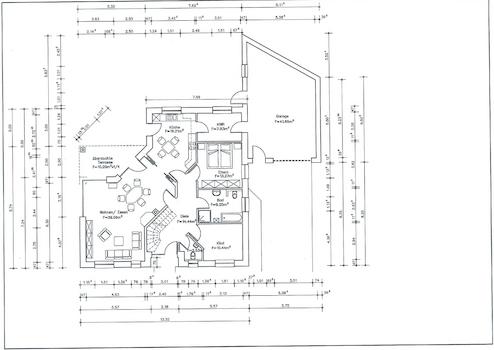 Die gesamte Grundrissgestaltung ist durchdacht und vor allem lichtdurchflutet, perfekte Anordnung der Fensterflächen bzw. Elemente. Im Dielenbereich befindet sich eine Aussparung (Treppenloch) in der Betondecke, hier wäre der Einbau einer formschönen Treppenanlage möglich. Der gesamte Dachgeschossbereich ist ausbaufähig, ca. 50 m² Ausbaureserve. Bei dem Ausbau des Dachgeschoss können die Wünsche oder Vorstellungen des Erwerbers berücksichtigt werden. Das Wohn/Esszimmer verfügt über bodentiefe Fensterelemente (kleiner Glaserker) von hier aus hat man einen traumhaften Blick auf das Gartengrundstück und betritt die großzügige und teilüberdachte Gartenterrasse. Das integrierte Esszimmer ist zur Küche hin mit einer Doppel-Schiebetür versehen. Durch die intelligent angeordneten Fensterflächen geht keine Stellplatzmöglichkeit verloren. Sie haben die Möglichkeit einen Kaminofen zu installieren, da ein Schornstein im Wohn-/Essbereich installiert wird. Es befinden sich 2 Schlafzimmer sowie ein großzügiges Bad im Objekt. Durchdachte Deckenspots Anordnung in der Immobilie sowie in den Dachüberständen von außen! Dieser Winkelwalmdachbungalow wird komplett schlüsselfertig inkl. Maler- & Gartenarbeiten erstellt. Auf eine hochwertige und einwandfreie Bauqualität wird geachtet.
