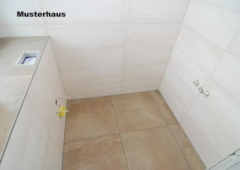 Das moderne Badezimmer ist wie folgt ausgestattet: Waschbecken mit Ablagefläche, bodentiefe Dusche mit Glastür, Hänge WC, Handtuchheizkörper, deckenhohe und zeitlose Verfliesung. Hochwertige Elemente und Armaturen. Das Gäste WC wird gleichwertig ausgestattet, Hänge WC, Waschbecken sowie geschmackvolle und zeitlose Verfliesung.