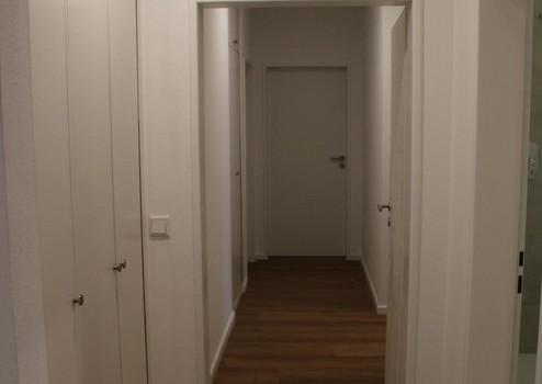 Am Ende des Flurs befinden sich zwei gut geschnittene Schlafzimmer. Somit würde sich die Wohnung auch sehr gut als WG mit 2 Parteien eignen. Das sehr großzügige Wohnzimmer gegenüber dem Eingang überzeugt durch große Fensterfronten.