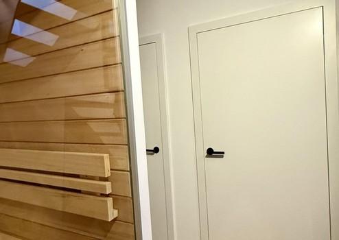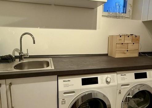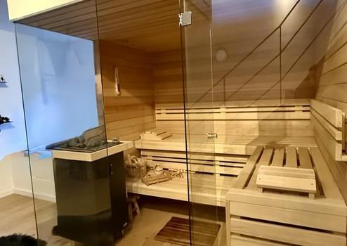 Wellnessbereich mit Sauna und großer Badewanne. Zusätzlich zwei weitere Räume: ein Heizungsraum sowie ein Raum, der als Waschküche und Vorratsraum genutzt wird. Durch Tageslicht lassen sich die Räume vielseitig nutzen.