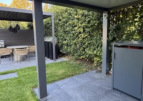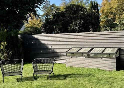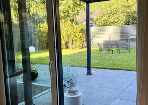 Der Garten ist großzügig, pflegeleicht angelegt und vollständig sichtgeschützt. Eine große Terrasse verbindet sich mit zwei überdachten Bereichen. Dazu gehören eine geschützte Sitzecke sowie ein separater Grillbereich. Ein geräumiges Gartenhaus mit weiterer überdachter Fläche ergänzt den Außenraum. In den warmen Monaten nutzen Sie den Garten wie eine natürliche Erweiterung des Wohnbereichs.