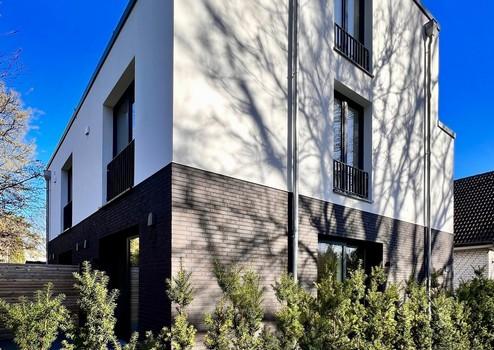 Helles Endhaus mit klarer Architektur, hochwertigen Materialien, großzügigem Garten und einem Wellnessbereich. Viel Licht, offene Ebenen und eine ruhige Lage direkt am Brabandkanal.
