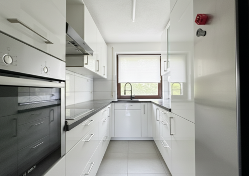 Die Küche ist mit einer modernen Einbauküche ausgestattet und ermöglicht komfortables Kochen in stilvollem Ambiente. Das Tageslichtbad wurde im Rahmen der umfassenden Modernisierung 2010 vollständig erneuert und präsentiert sich ebenso wie das separate WC in zeitgemäßem Design.