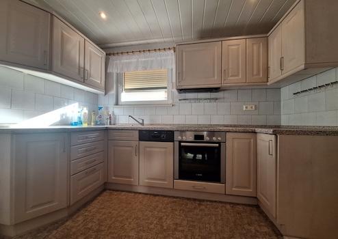 Das Wohnzimmer mit einem Laminatboden in heller Holzoptik, Fußbodenheizung und einer stilvollen Plameco-Spanndecke kann Ihr neuer Lieblingsplatz im Haus werden. Für jeden der es lieber bequem mag, ist die kleine aber voll ausgestattete Küche genau das richtige. Hier ist Ihr Organisationstalent gefragt!