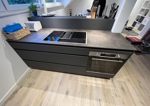 + 1 sehr großzügiger offener Wohn-Essbereich mit moderner hochwertiger griffloser Küche mit separater Kochinsel inkl. Kochfeldabzugssystem und Premium-Geräten