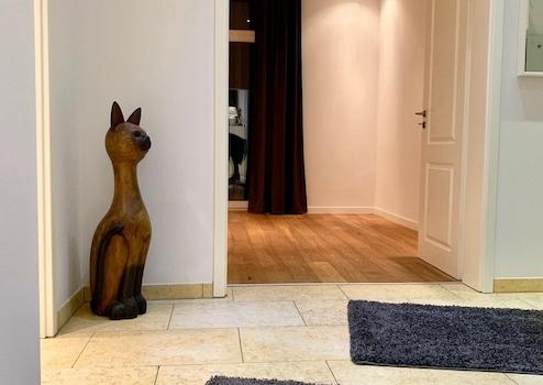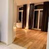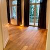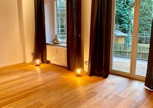 Eichenparkettboden im Wohnzimmer, in der Wohnung ist ein sehr seltener afrikanischer Stein verlegt wirkt warm und behaglich ist sehr pflegeleicht wie ein hochwertiges Schalterprogramm, TV Anschlüsse in allen Räumen, Einbauleuchten in allen Räumen, Einbaumöbel , Küche, in Schlafzimmer und Büro wurde Eichenparkett verlegt, schöne passende Gardinen und Rollos runden den Eindruck ab. Die Sicherheitswohnungtüre hat ein Codeschloss von Seccor, wer es kennt will es nicht mehr vermissen !