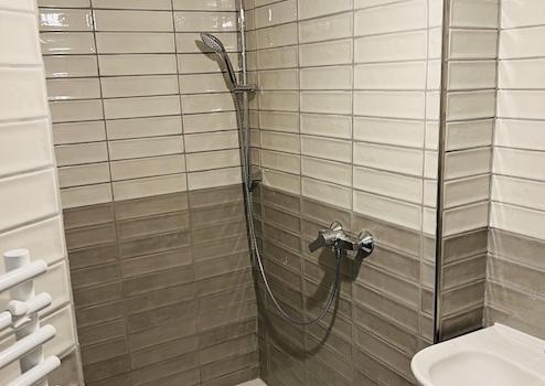 - Neues Badezimmer mit Dusche und Fliesen im Jugendstil