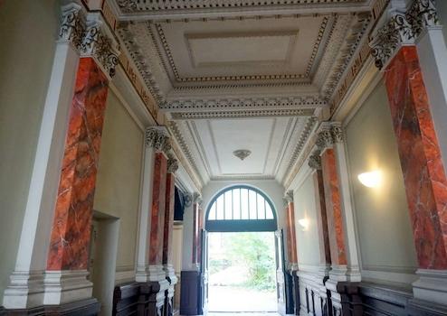 Straßenbahn, Bus und Zugverbindungen befinden sich in der Nähe.