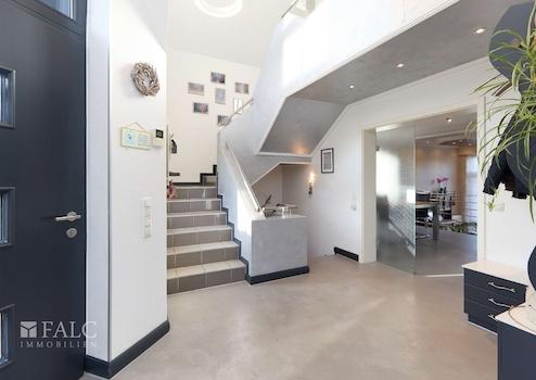 Bereits der offene und lichtdurchflutete Eingangsbereich wird Sie begeistern! Hohe Decken und die elegante Treppe sind ein Highlight - nicht nur für Besucher!