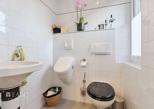 Ihr Hauptbadezimmer ist mit Dusche und Wanne ausgestattet. Das Badezimmer in der Einliegerwohnung hält eine Dusche bereit. Sämtliche Bäder sowie das Gäste-WC sind raumhoch und zeitlos gefliest.