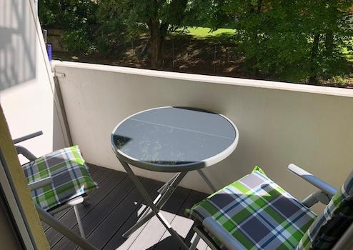 – überdachte, nach Südwesten ausgerichtete Loggia mit Blick ins Grüne