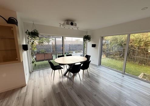 Im Erdgeschoss erwartet Sie ein offener Wohn- und Essbereich mit Zugang zur Terrasse und zum Garten, die luxuriöse Küche, ein Gästezimmer/Büro sowie ein Gäste-WC.