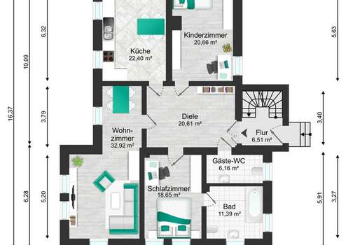 --> 140 m² im 1. OG mit eigenem Gartenanteil (ca. 300 m²)