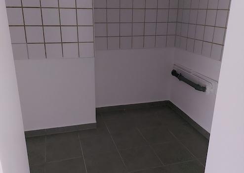 - geräumiger Hauswirtschaftsraum mit Waschmaschinenanschluss, Fliesenspiegel