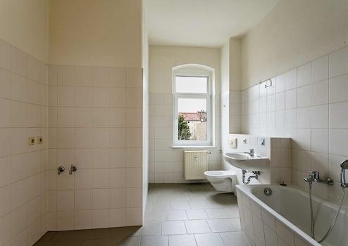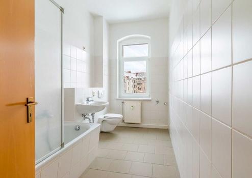 Die großzügigen Bäder mit Fenstern, gefliesten Fußböden und Wänden entsprechen den aktuellen Standards und besitzen alle eine Badewanne mit Dusche, ein WC, ein Waschbecken mit Warm- und Kaltwasseranschlüsse sowie einen Waschmaschinenanschluss.