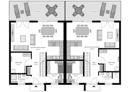 ndividuelle Planung jeder Doppelhaushälfte